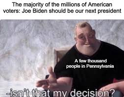 People are meme-ing their way through the wait for Nevada results making posts imagining what could be going on in the state as well as. I am really torn on whether I would prefer popular vote over electoral college because I feel the ec. This Monday the Electoral College begins the vote that will formally validate Joe Biden as the president-elect.