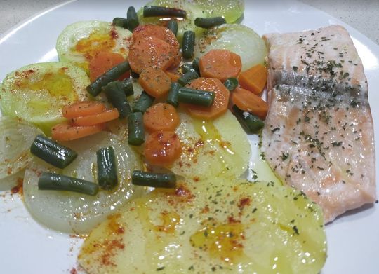 El salmón es uno de los pescados más ideales para cocinar al vapor ya que aparte de tener un sabor increíble nos aporta una gran cantidad de nutrientes y vitaminas como la A B y D.